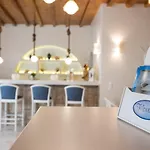 A vendégek kihasználhatják a hűtővel és sütővel ellátott teakonyha előnyeit is. Európai ételeket szolgálnak fel az Aperanto Galazio konyhájából, nem túl messze az apartmantól. Az apartman autóval 10 percre van a Mikonosz repülőtértől.